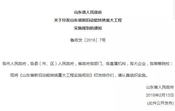 山东省为全面贯彻党的十九大精神,根据《国务院关于山东新旧动能转换综合试验区建设总体方案的批复》(国函〔2018〕1号)精神,按照《国家发展改革委关于印发山东新旧动能转换综合试验区建设总体方案的通知》(发改地区〔2018〕67 号)要求,落实省第十一次党代会部署,加快推进新旧动能转换重大工程,全面提升...
