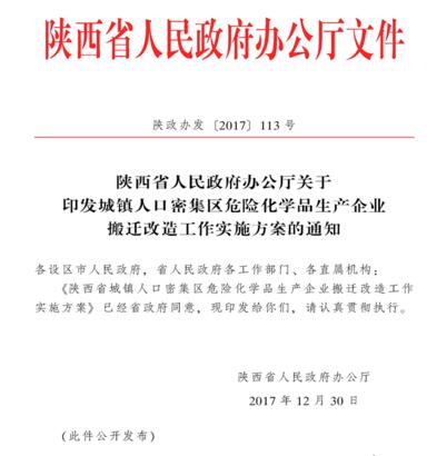 近日,省人民政府办公厅印发《陕西省城镇人口密集区生产企业搬迁改造工作实施方案》,旨在妥善解决安全和卫生防护距离不达标问题,有效遏制危险化学品重特大事故,保障人民群众生命财产安全,促进石化化工产业转型升级。要求到2025年,陕西省城镇人口密集区现有不符合安全和卫生防护距离要求的危险化学品生产企业就地改...