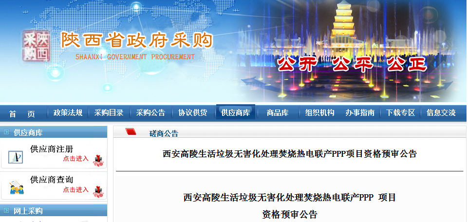 陕西省政府采购网发布了《西安高陵焚烧热电联产PPP 项目资格预审公告》。这个项目,相信大家并不陌生,我们先一起回顾一下这个项目2017年的动态,2017年11月中国政府采购网发布,以首创环境、中国环境保护、北京环境、重庆三峰等领头的7家联合体榜上有名。2017年12月12日,宣布将竞争性磋商文件提交...
