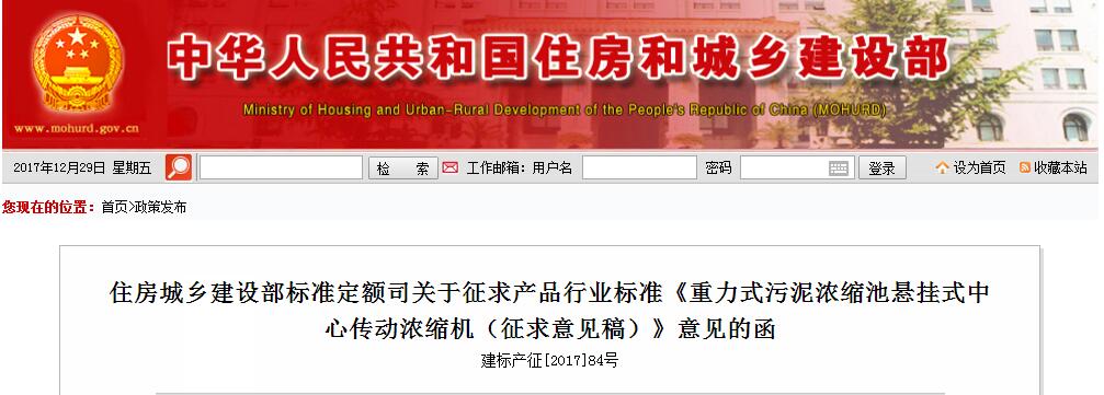 日前,住建部标准定额司发布《住房城乡建设部标准定额司关于征求产品行业标准《重力式浓缩池悬挂式中心传动浓缩机(征求意见稿)》意见的函,征求由中国市政工程华北设计研究总院有限公司牵头起草的产品行业标准《重力式悬挂式中心传动浓缩机(征求意见稿)》(见附件)意见。详情如下:住房城乡建设部标准定额司关于征求产...