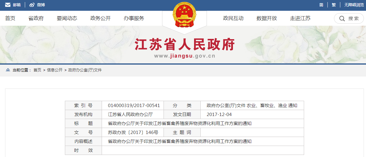 近日,省环保厅发布了《省政府办公厅关于印发江苏省资源化利用工作方案的通知》,公开《江苏省畜禽养殖利用工作方案》,以加快推进畜禽养殖废弃物资源化利用,促进畜牧业绿色可持续发展。全文如下:省政府办公厅关于印发江苏省畜禽养殖废弃物资源化利用工作方案的通知(苏政办发〔2017〕146号)各市、县(市、区)人...