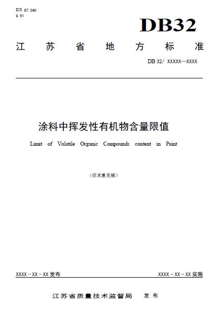 日前,省地方标准《涂料中含量限值》(征求意见稿)已经公布。征求意见稿对江苏省涂料中限值做了详细规定。关于公开征求江苏省地方标准《涂料中挥发性有机物含量限值》(征求意见稿)意见的通知各有关单位、专家:根据江苏省质量技术监督局《关于下达2017年度第1批地方标准项目计划的通知》(苏质监标发﹝2017﹞5...