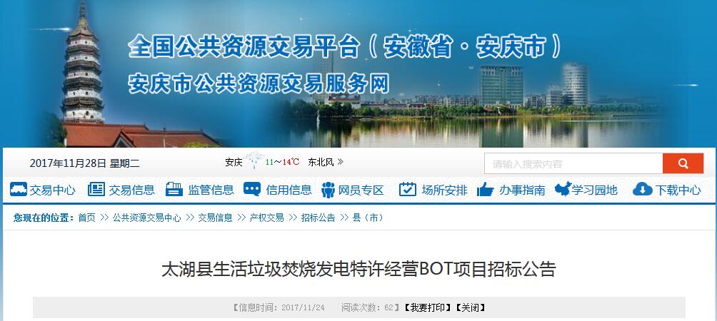 从安徽省安庆市公共资源交易平台获悉,近日发布了太湖县生活特许经营招标公告 ,具体公告内容如下:安徽安天利信工程管理股份有限公司受太湖县城市管理行政执法局委托,拟对太湖县特许经营BOT项目进行公开招标,欢迎合格投标人参加投标。现将招标有关事宜公告如下:一、项目概况1.1项目概况:项目总规模1200吨/...