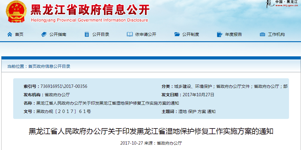 近日,在省人民政府办公厅获悉关于印发黑龙江省工作实施方案的通知,全文如下:黑龙江省人民政府办公厅关于印发黑龙江省湿地保护修复工作实施方案的通知各市(地)、县(市)人民政府(行署),省政府各有关直属单位:《黑龙江省湿地保护修复工作实施方案》已经省政府同意,现印发给你们,请认真贯彻执行。黑龙江省人民政府...