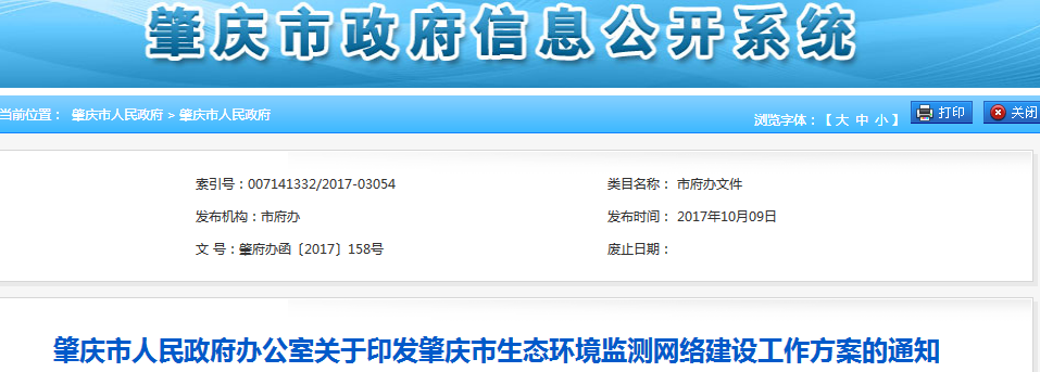 近日,肇庆市印发了《肇庆市网络建设工作方案》,方案提出到2020年,建成水陆统筹、天地一体、上下协同、信息共享的生态环境监测网络。基本实现、、生态状况监测全覆盖;生态环境监测大数据平台基本建成,各级各类监测数据系统互联共享,监测信息统一规范发布,监测预报预警、信息化能力和保障水平明显提升;监测与监管...