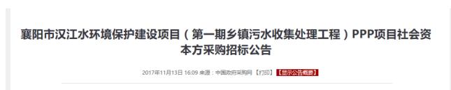 从中国政府采购网获悉,43亿乡镇项目开始招标:襄阳市汉江水环境保护建设项目(第一期乡镇处理工程)社会资本方采购项目发布招标公告,公告显示,项目投资估算约432086.80万元。根据公告内容,该项目建设地点覆盖襄阳市保康县、谷城县、南漳县、樊城区、老河口市、襄州区、襄城区、宜城市、枣阳市等九个县市区,...