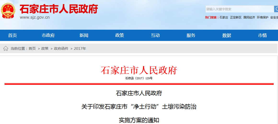 近日,石家庄市政府印发了《石家庄市“净土行动”防治实施方案》,方案提出到2020年,全市稳中向好,重点区域土壤污染加重趋势得到控制,农用地土壤环境得到有效保护,建设用地土壤环境安全得到基本保障,全市土壤环境监管能力得到显著提升,土壤环境风险得到全面管控。到2020年,全市受污染耕地安全利用率达到89...