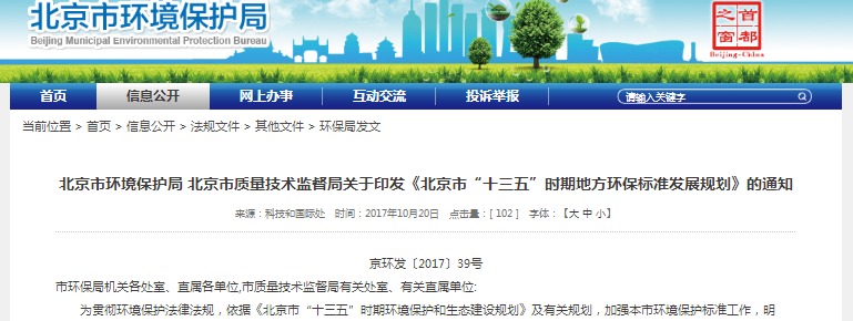 近日,北京市局发布关于印发《北京市“十三五”时期地方环保标准发展规划》的通知,全文如下:北京市环境保护局 北京市质量技术监督局关于印发《北京市“十三五”时期地方环保标准发展规划》的通知京环发〔2017〕39号市环保局机关各处室、直属各单位,市质量技术监督局有关处室、有关直属单位:为贯彻环境保护法律法...