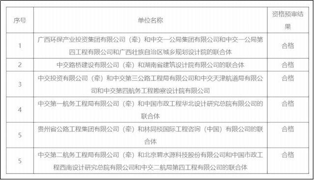 环保在线从广西南宁市政府集中采购中心获悉,南宁市武鸣区流域水环境综合整治PPP项目发布资格预审结果公告,其中显示有6大联合体入围,具体如下: 其中广西环保产业投资集团有限公司作为联合体牵头方的身影很亮眼。资料显示,这是一家经广西壮族自治区人民政府批准成立的生态环境领域国有省级平台公司,是广西物资集团...