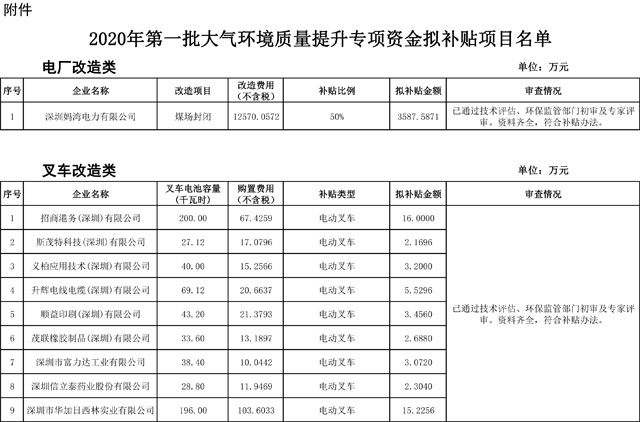 根据《深圳市大气环境质量提升补贴办法(2018-2020年)》(深人环规〔2018〕2号),现将2020年第一批大气环境质量提升专项资金拟补贴项目予以公示。公示期为2020年6月18日至24日。如有异议,请在公示期内通过电话、电子邮件等途径,向市生态环境局业务经办人反馈。 附件:2020年第一批大气...