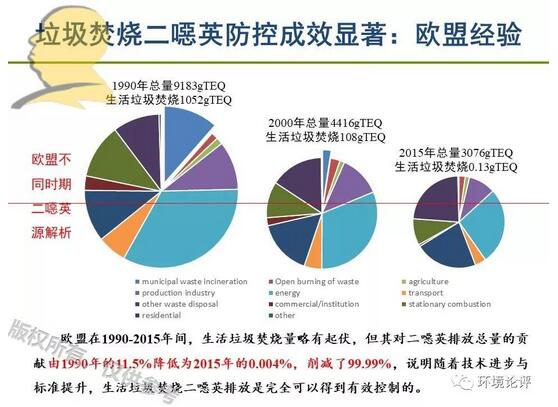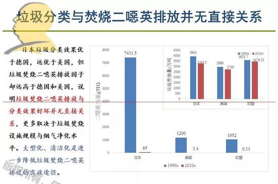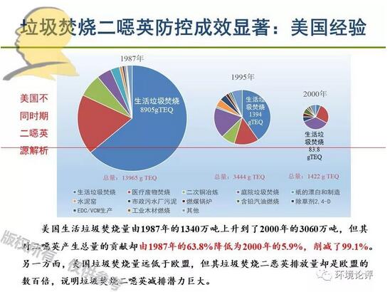我国现代化垃圾焚烧起步较晚,主要通过引起消化再创新的方式,较好地实现了与发达国家同期先进技术的接轨,在我国二噁英排放清单中过去不曾是、现在算不上、将来也不可能成为“带头大哥”。事实上,由于垃圾本身均含有一定量的二噁英,现代化大型垃圾焚烧设施更多地是二噁英的消减器,而不是发生器。从欧盟、美国、日本的经验来看,通过技术进步和标准提升,垃圾焚烧二噁英排放削减率可超过99%,甚至达到99.99%。