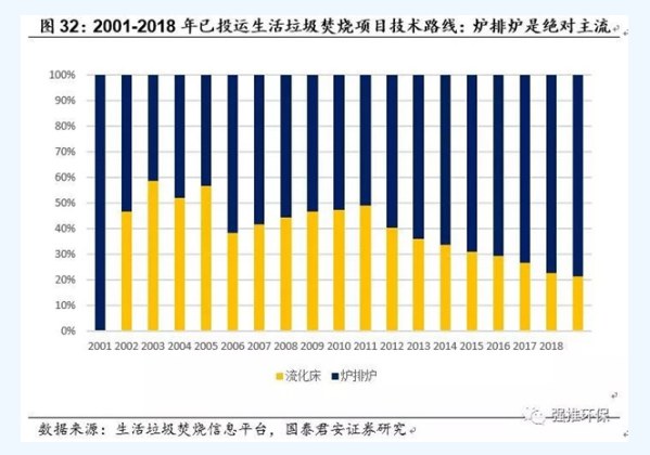 炉排炉较流化床技术吨上网电量高,而炉排炉技术在我国已成为绝对主流。