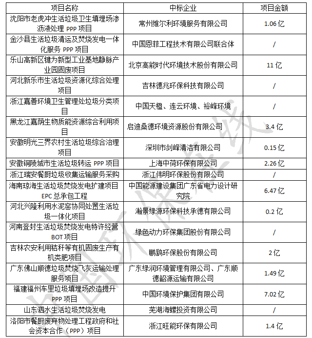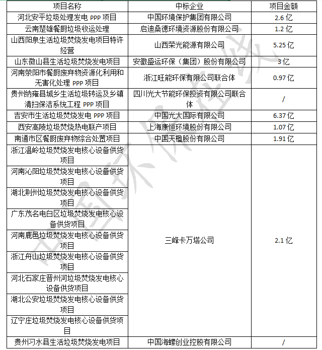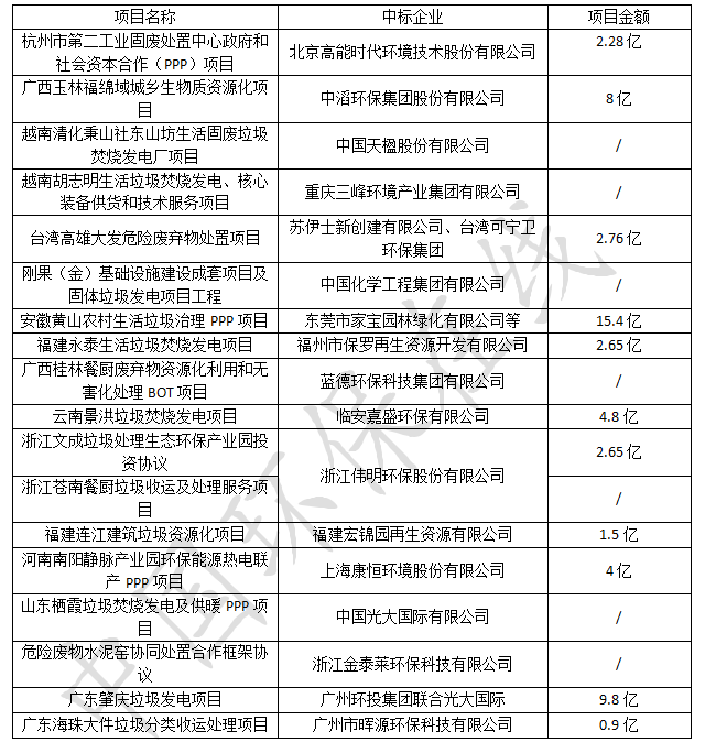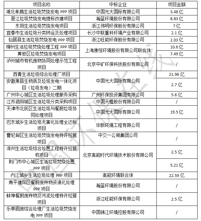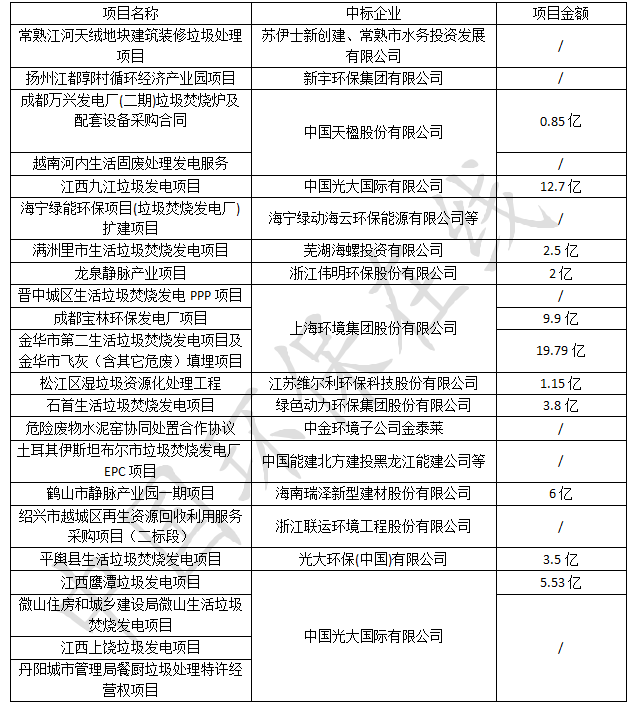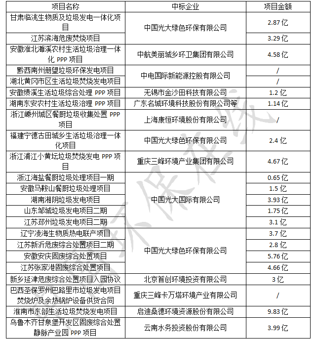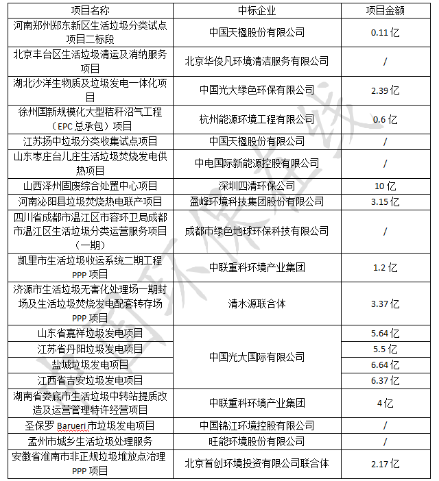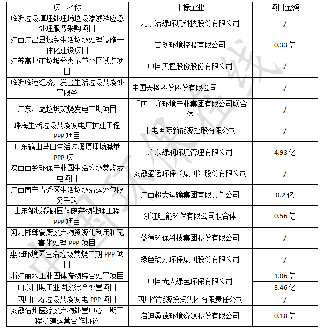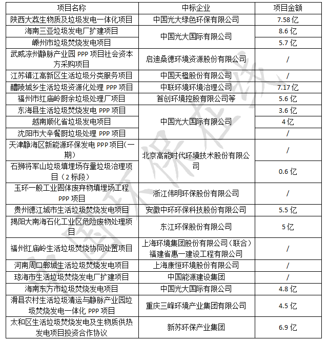 注:本轮2018固废项目盘点为非完全统计,并且经过有条件筛选,只为部分展示,其中不包括环卫清洁项目,不包括预中标项目,仅供参考。