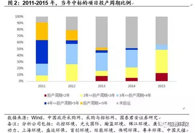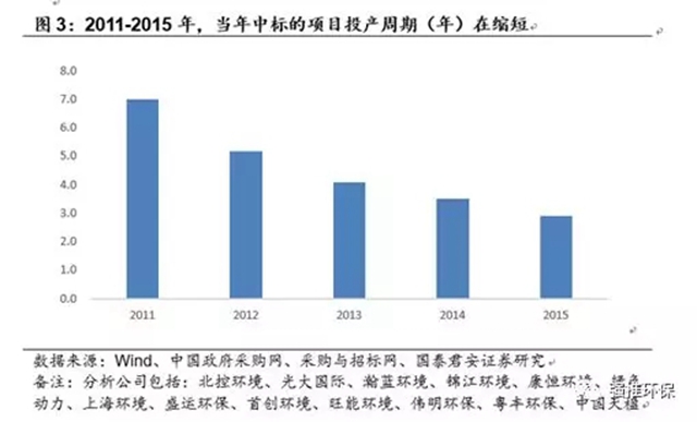 2011到2015年,当年中标项目的平均投产周期在缩短。