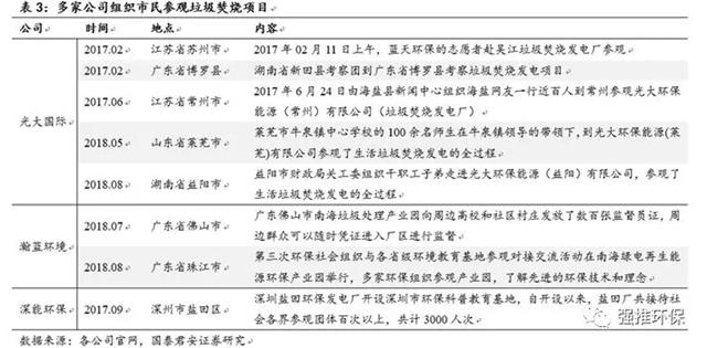 随着行业发展成熟,政府和垃圾焚烧企业在选址上更有经验,群众宣传教育和沟通更加到位,行业龙头公司定期组织市民参观垃圾焚烧项目并公开实时烟气排放数据等宣传,有效的缓解居民负面情绪,取得其认可和支持;此外,龙头公司品牌效应较为突出,更易被信赖,因此群体性事件带来的负面效应也相对较少。