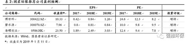 配置垃圾焚烧板块中处于成长期的龙头公司,产能释放加速、盈利能力改善、项目优质的公司为受益标的,包括:1)2019年为产能释放大年、利润率改善明显的旺能环境;2)项目多位于浙江地区、盈利能力强的伟明环保;3)项目多位于珠三角地区、运营稳健的瀚蓝环境;4)行业产能第一龙头中国光大国际。