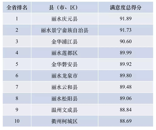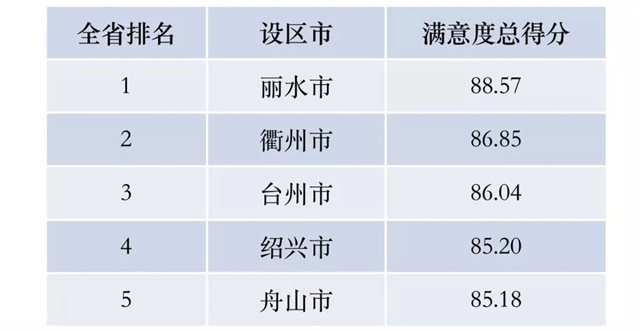 生态环境好不好,老百姓说了算。日前,2018年度浙江省生态环境公众满意度调查报告出炉。2018年社会公众生态环境满意度全省平均得分为82.85分,比2017年上升4.31分,实现了连续7年持续提升,且平均得分首次突破80分,其中设区市得分最高的前三名依次是丽水、衢州、台州,县(市、区)得分最高的前三名依次是丽水庆元县、景宁畲族自治县和金华浦江县。