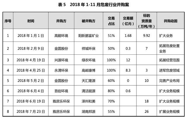高门槛、高利润、严监管、大缺口”的危废处理行业正在成为各路资本追逐的“香饽饽”。不完全统计结果显示,仅2018年全国危废行业兼并购数量就超过10起,资本的介入也加快了行业整合。