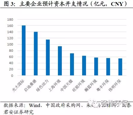 我们测算这9家公司项目全部落地需要超过800亿资本开支。根据各公司在手项目平均吨投资及在手未投运产能测算出各公司的预计资本开支情况。其中光大国际、启迪桑德、绿色动力、上海环境若目前在手所有项目都落地,预计资本开支都将大于100亿元;而中国天楹、旺能环境、瀚蓝环境、粤丰环保、伟明环保预计资本开支约在50-70亿元之间。
