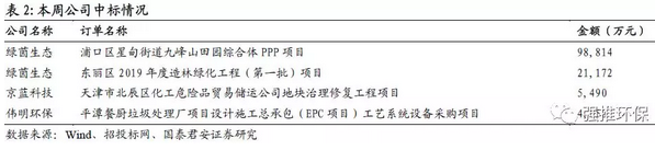根据公告与招投标信息统计,本周环保公司中新增订单4单、中标总金额13.01亿;新增订单前三名分别为绿茵生态、京蓝科技、伟明环保。