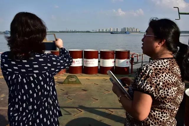 2017年9月,原环境保护部长江经济带饮用水水源地环境保护执法专项行动第一督查组在湖北荆州督查。图为码头上的危险化学品引起督查人员注意。摄影/章轲