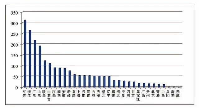 2017年各省区市危险废物持证单位实际收集和利用处置量。资料来源:生态环境部