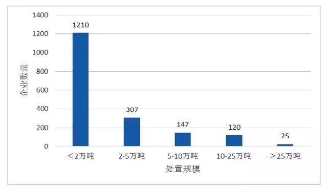 2017年危险废物处置企业规模数量图。资料来源:中国环联