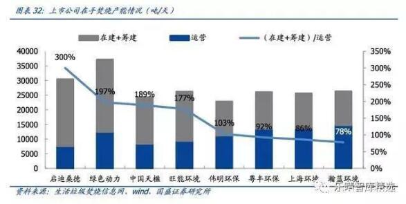 2015年存量垃圾焚烧产能为23.5万吨/日,规划产能提升150%,年复合增速20%,总投资2518亿元。目前垃圾焚烧上市公司(在建+筹建)/(运营)产能均超过70%,预计2019-2020进入投产大年,业绩加速释放。