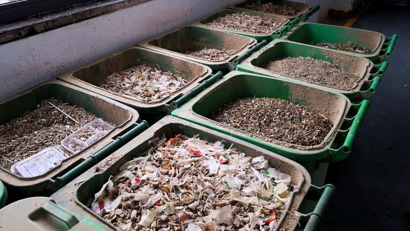 经过前期筛检,混在湿垃圾中的干垃圾被分拣出来,并按照大小分别收集,再运至专门的单位处置。随着源头分类意识的提高,湿垃圾中的杂质会越来越少。