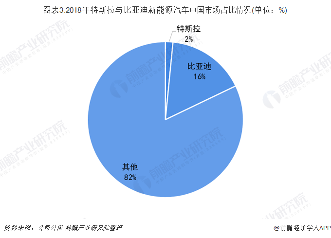 2018年中国新能源汽车销量比亚迪约为特斯拉10倍