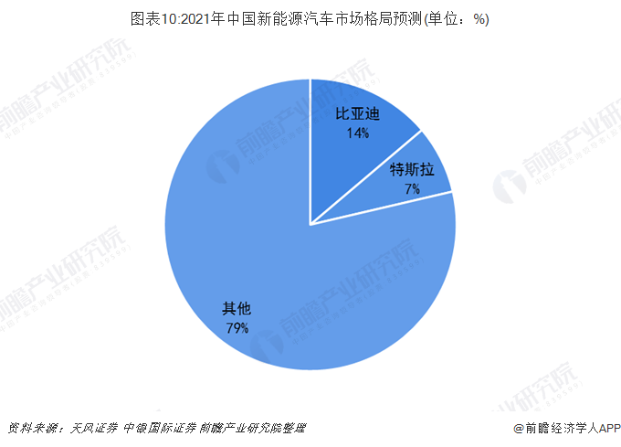 2015-2018年中国新能源汽车的复合增长率为55.97%,前瞻预计,2021年,中国新能源汽车销量将超477万辆。因此2021年,比亚迪将占中国新能源汽车总销量的14%,特斯拉约为7%。