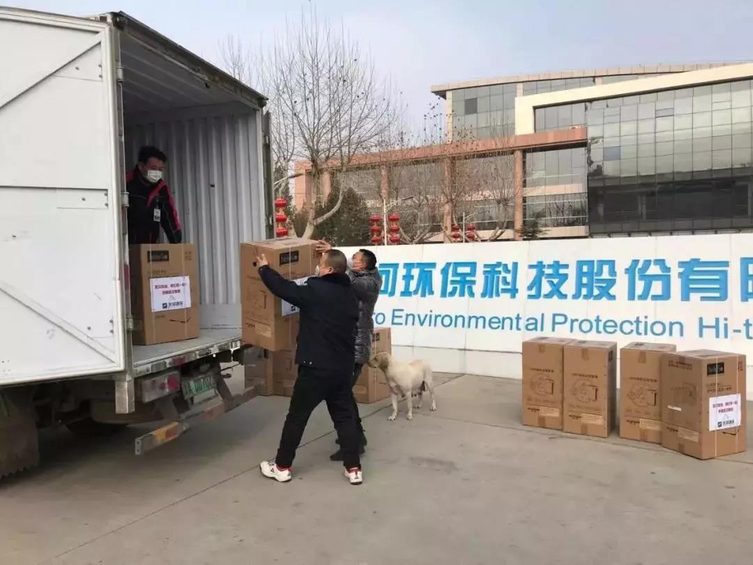 河北先河环保向湖北捐赠医疗废物转运车6辆、医疗废水在线监测设备2台、口罩30000多只、手套20000多双、酒精300多箱、泡腾片80000多片、净化器200多台。