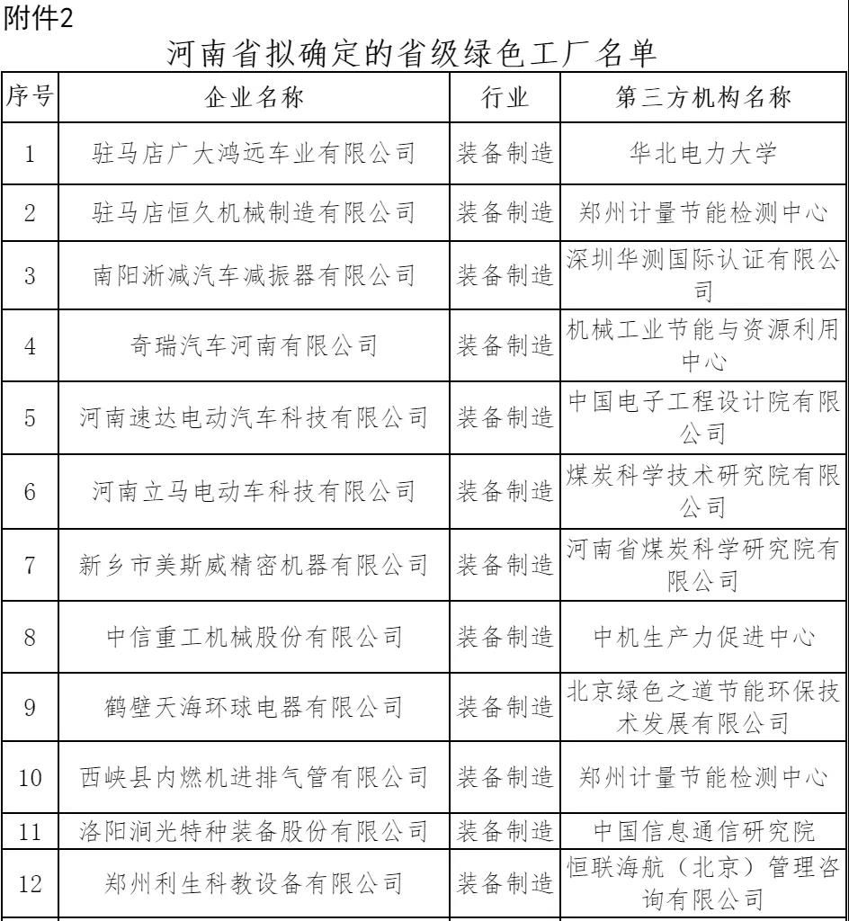 1.河南省拟推荐参评国家级绿色工厂名单