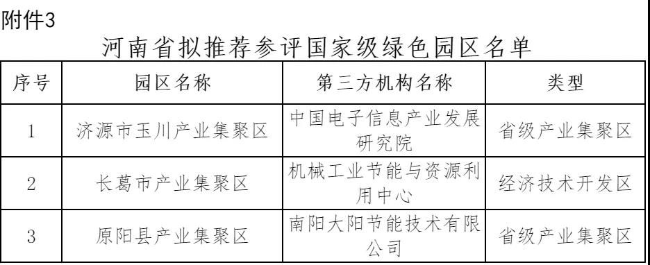 3.河南省拟推荐参评国家级绿色园区名单
