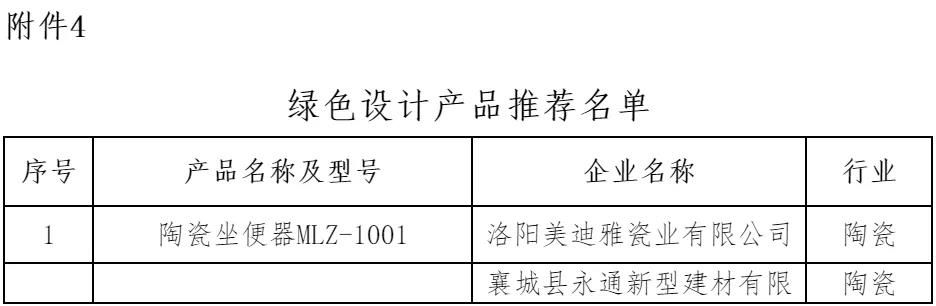 4.河南省拟推荐参评国家级绿色设计产品名单