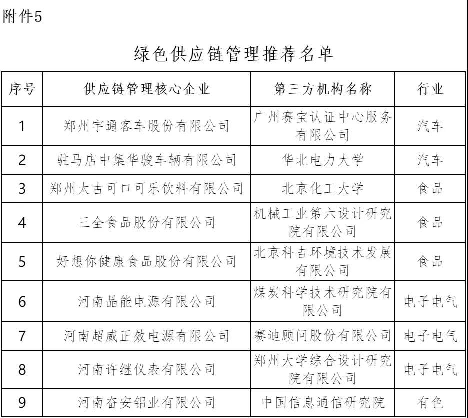 5.河南省拟推荐参评国家级绿色供应链名单
