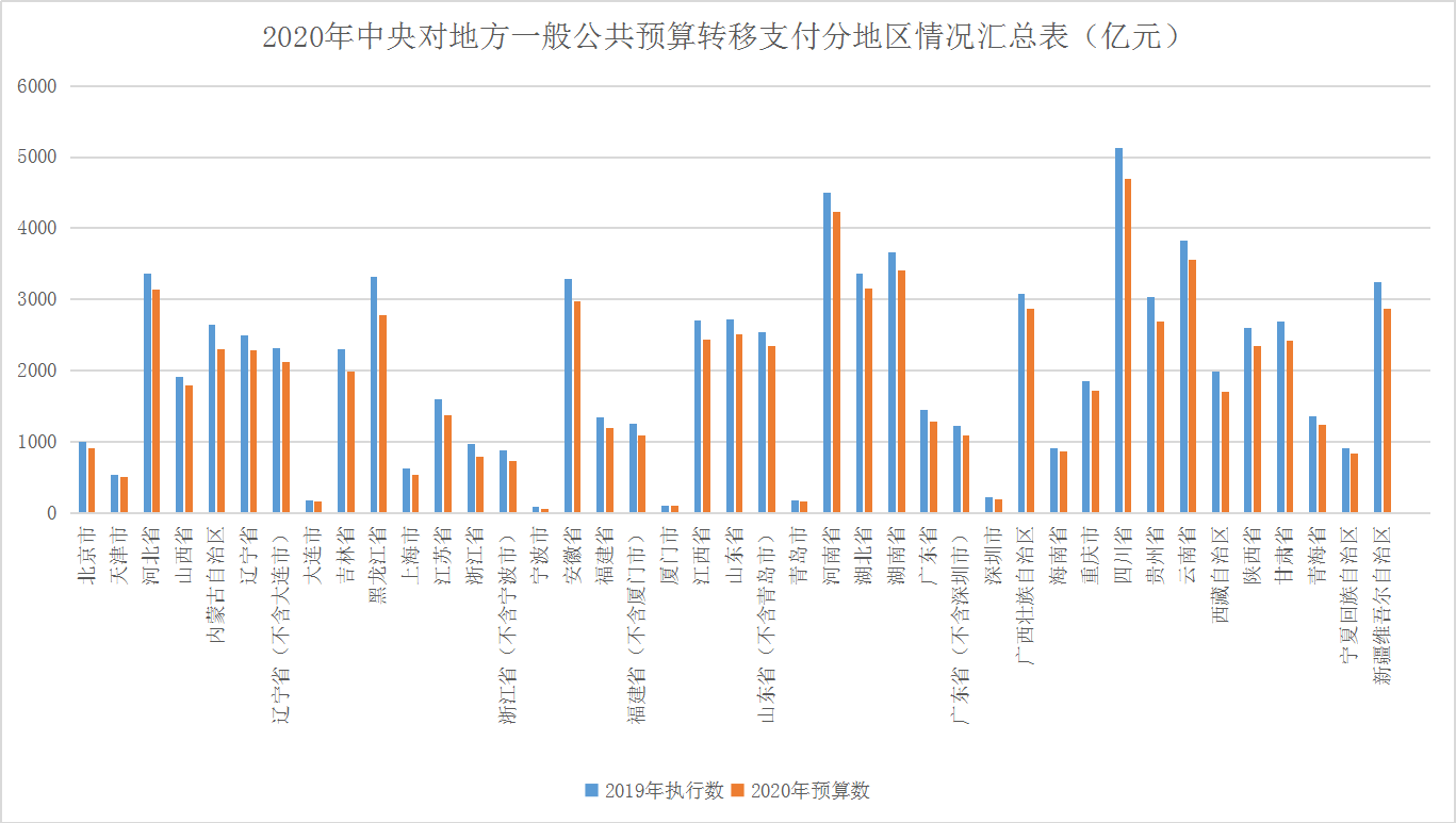 2020年中央对地方转移支付预算数为83915亿元,加上使用以前年度结转资金1121.33亿元,2020年中央对地方转移支付支出为85036.33亿元。