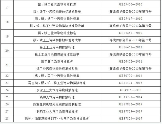 截至目前共涉及28项国家排放标准