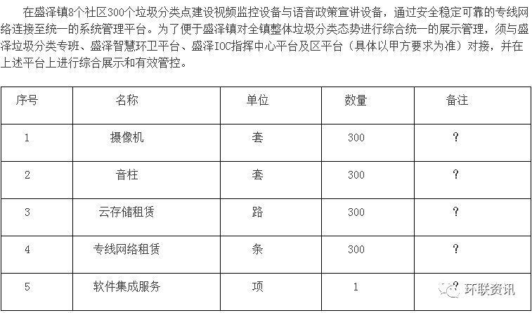 今年6月,《苏州市生活垃圾分类管理条例》(以下简称条例)正式实施,苏州进入推进垃圾分类的关键一年。《条例》提出:各地将完善各种“互联网+”垃圾分类平台的应用,以信息化手段形成区域全覆盖收运能力。这标志着苏州将运用互联网、物联网、大数据技术,搭建“苏州垃圾分类综合管理平台”。这一标准在《盛泽镇生活垃圾分类运营服务》的招标公告中也得到体现,公告提出:“在盛泽镇8个社区300个垃圾分类点建设视频监控设备与语音政策宣讲设备,通过安全稳定可靠的专线网络连接至统一的系统管理平台。为了便于盛泽镇对全镇整体垃圾分类态势进行综合统一的展示管理,须与盛泽垃圾分类专班、盛泽智慧环卫平台、盛泽IOC指挥中心平台及区平台(具体以甲方要求为准)对接,并在上述平台上进行综合展示和有效管控。”