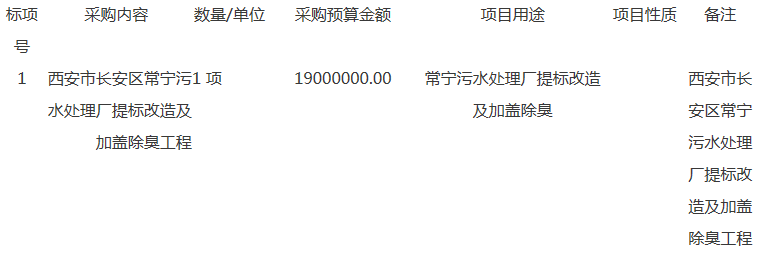 一、采购项目名称:西安市长安区常宁污水处理厂提标改造及加盖除臭工程