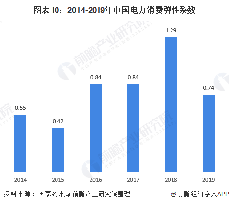 同理,电力消费弹性系数近年来也有所下降,2019年,电力消费弹性系数降为0.74,说明我国电力消费的增速也低于了我国国民经济的增长速度,我国能源的利用效率可见一斑。
