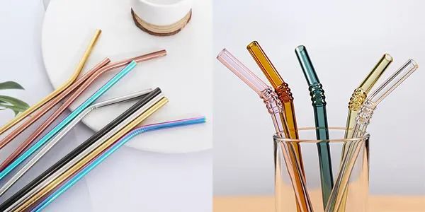 漂亮的可回收金属吸管(左 | myshopify)和有色玻璃吸管(右 | condorbazar)