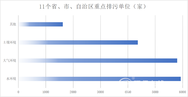 总的来看,这11个省、市、自治区纳入水环境重点排污单位名录的总计有5931家;纳入大气环境重点排污单位名录的总计有5799家;纳入土壤环境污染重点监管单位名录的总计有4364家,纳入其他重点排污单位名录的有1620家。