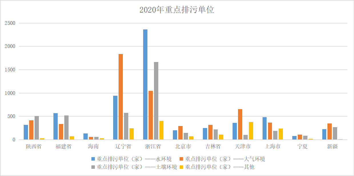 从上图看,海南省、北京市、吉林省、宁夏、新疆2020年重点排污单位数量均未破千,而浙江省在11个省、市、自治区中是公开2020年重点排污单位数量最多的,达到3972家。