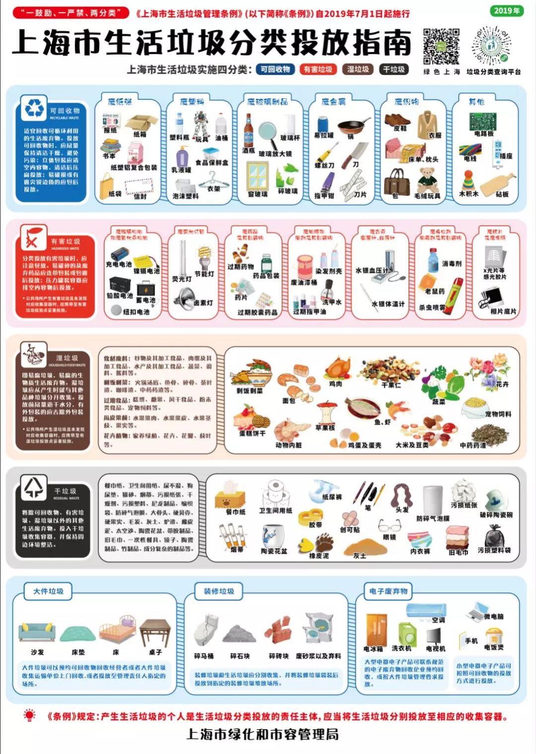2020年,垃圾分类逐步成为引领申城低碳生活的新时尚。6月份,全市生活垃圾清运总量96.86万余吨,与2019年同期相比,四分类垃圾“三增一减”:可回收物回收量6813.7吨/日、增长71.1%,有害垃圾分出量3.3吨/日、增长11.2倍,湿垃圾分出量9632.1吨/日、增长38.5%,干垃圾处置量15518.2吨/日、下降19.8%。干垃圾焚烧和湿垃圾处置总能力达到24350吨/日。全市成立16支区级志愿者服务分队、53支街道(乡镇)志愿者服务队;聘任市、区生活垃圾管理社会监督员940名;垃圾分类、《条例》宣传覆盖5800个居住区(村),6千多名人大代表、政协委员参与垃圾分类实效测评;举办《条例》集中培训1.6万余场次,组织宣传报道2.8万余篇,完成居住区入户宣传980余万次。