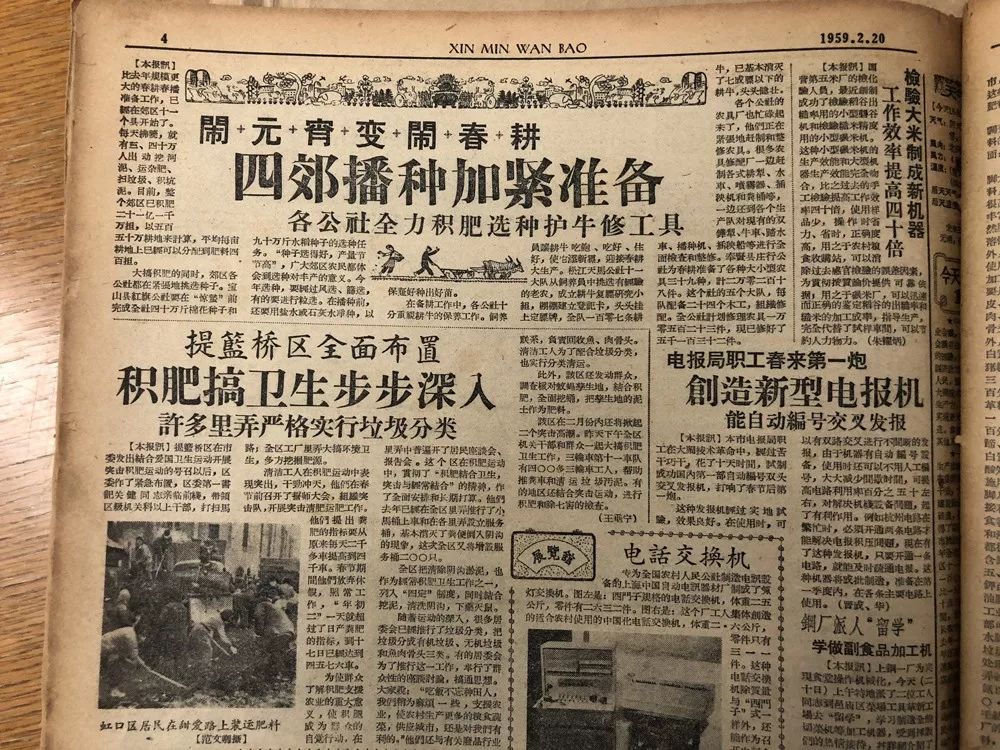 1959年2月20日《新民晚报》刊载消息“提篮桥区......许多里弄严格实行垃圾分类”