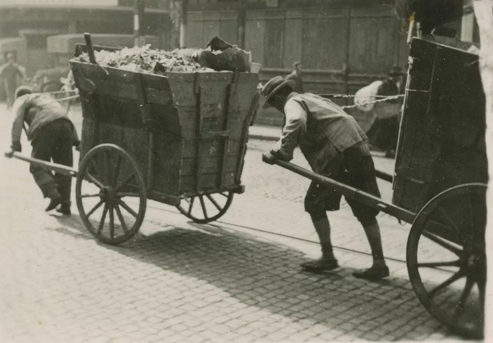 20世纪30年代,上海街头的清道夫及垃圾收集车辆
