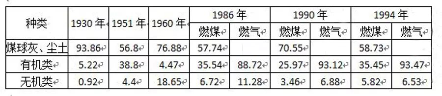 注:(1)1930年数据以公共租界统计资料为依据;(2)1986年后居民生活垃圾成分为使用燃煤制品和煤气两类地区统计