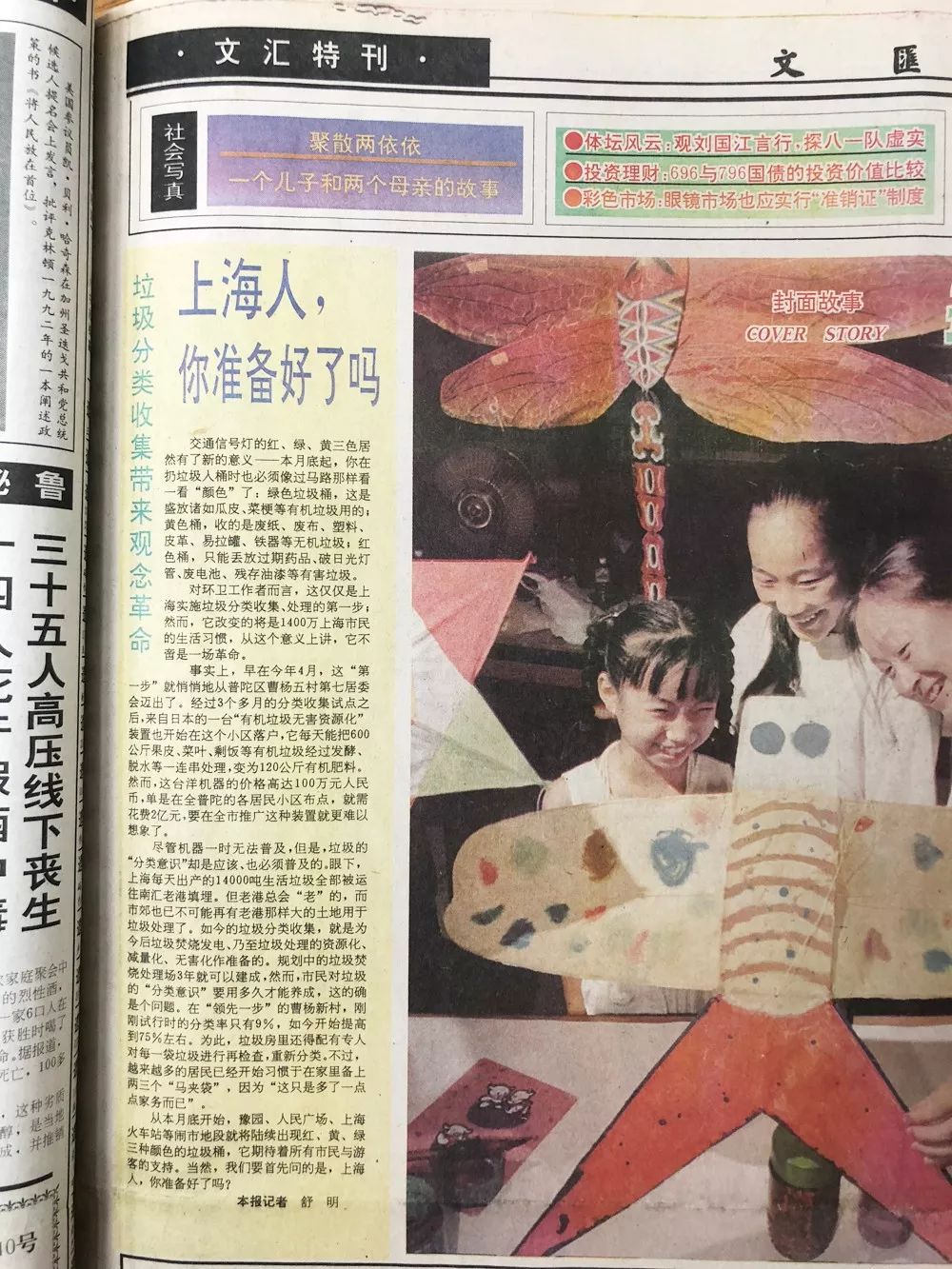1996年8月17日《文汇报》文汇特刊版面刊载“垃圾分类收集带来观念革命 上海人,你准备好了吗?”