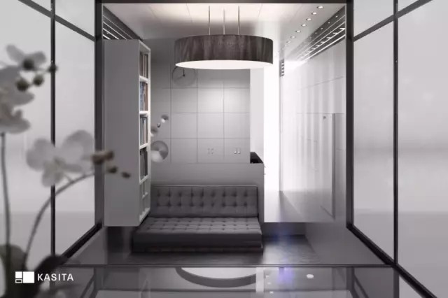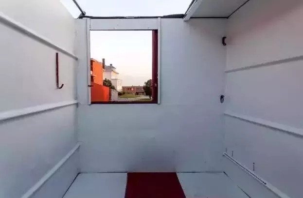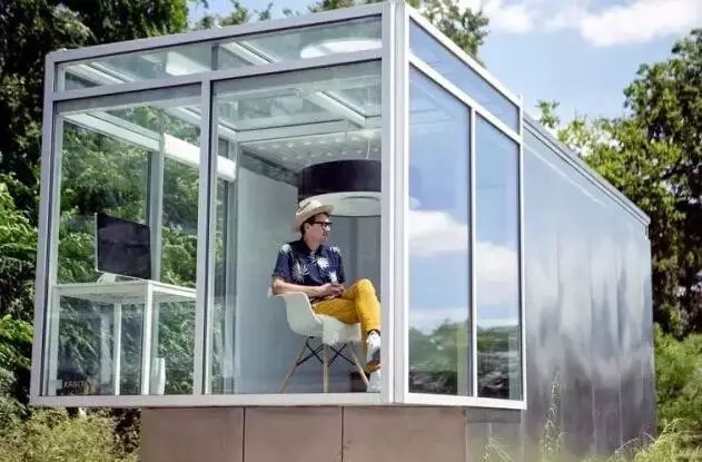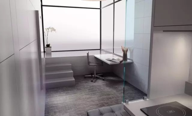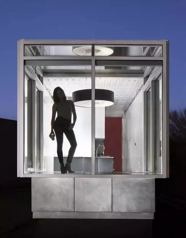 样板房看上去还是垃圾箱的形状,格调却要高很多。用特殊玻璃SageGlass制成的落地窗,不仅看起来高端大气上档次,还能根据室外阳光强度自动遮光。